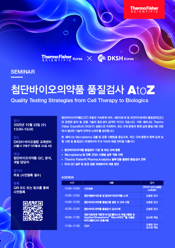 “첨단바이오의약품 품질검사 A to Z” 이론 세미나(무료)