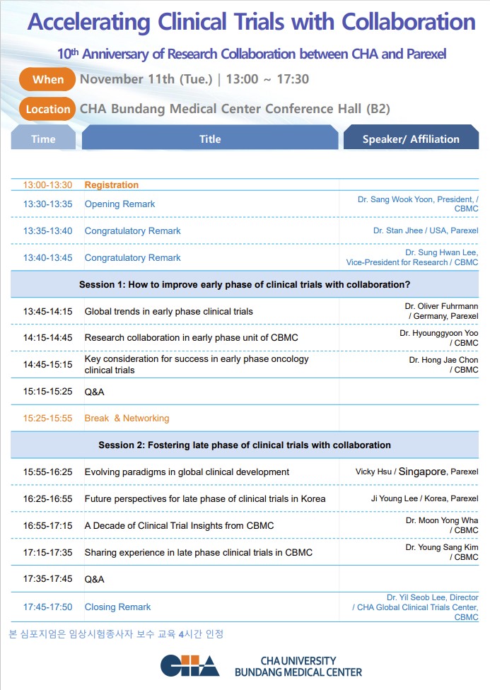 파렉셀-분당차병원 심포지엄: Accelerating clinical trials with collaboration