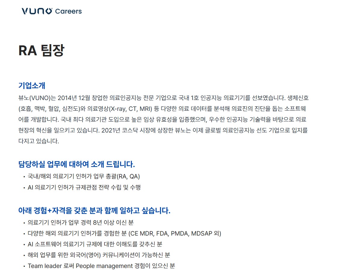 [vuno]RA 팀장 채용